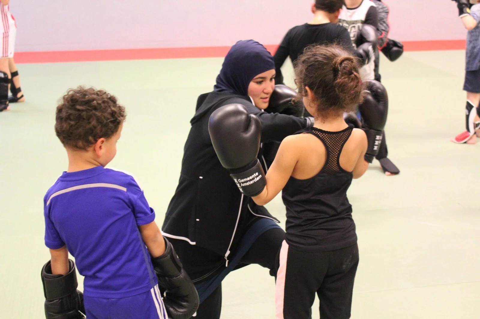 At the age of fourteen, she became Dutch youth kickboxing champion. Houda Loukili uses her qualities as a role model for girls and as a mother of three children to get different target groups moving.